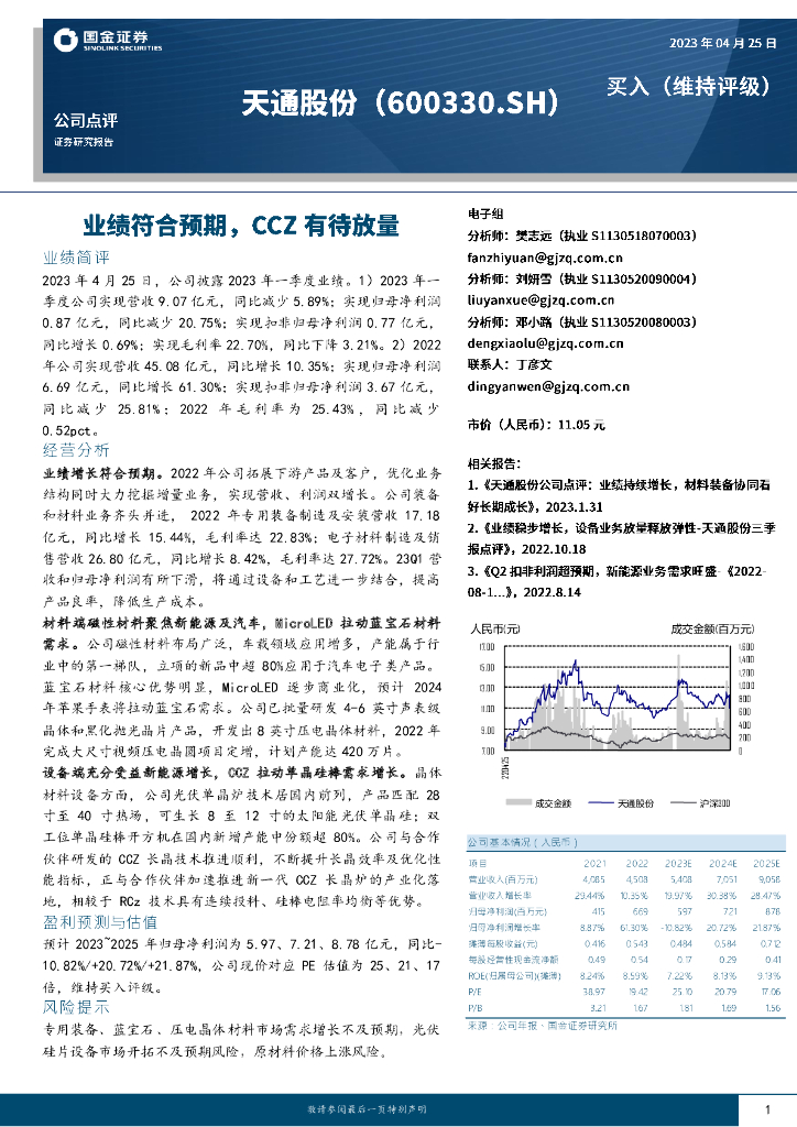 国金证券:天通股份(600330)-业绩符合预期,CCZ有待放量.pdf