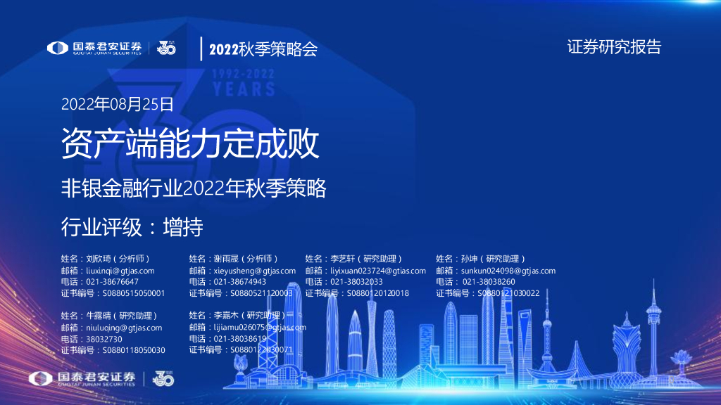 国泰君安:非银金融行业2022年秋季策略:资产端能力定成败.pdf
