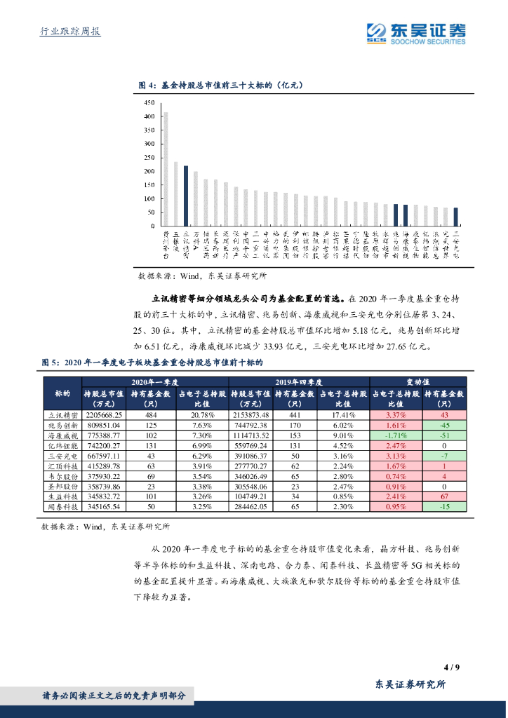 东吴证券:电子行业周报:2020Q1电子板块基金持仓:整体下滑明显,半导体占比持续提升.pdf