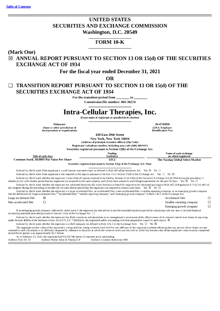 Intra-Cellular Therapies Inc(ITCI)2021财年年度报告(英文版).pdf