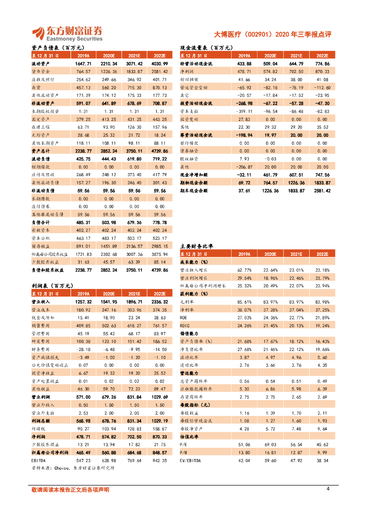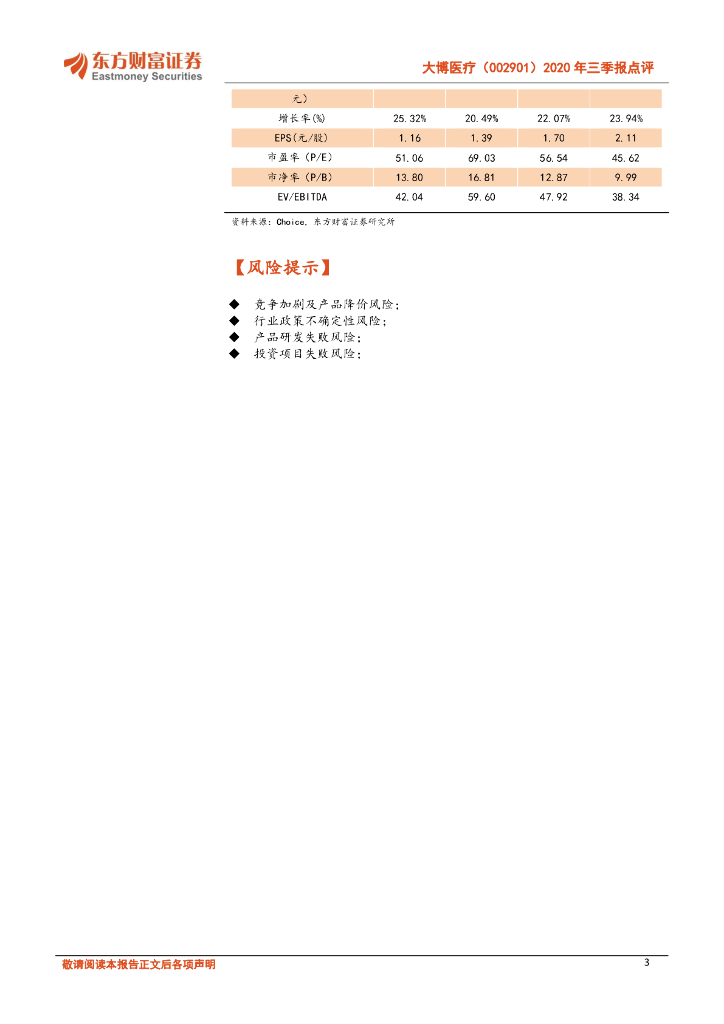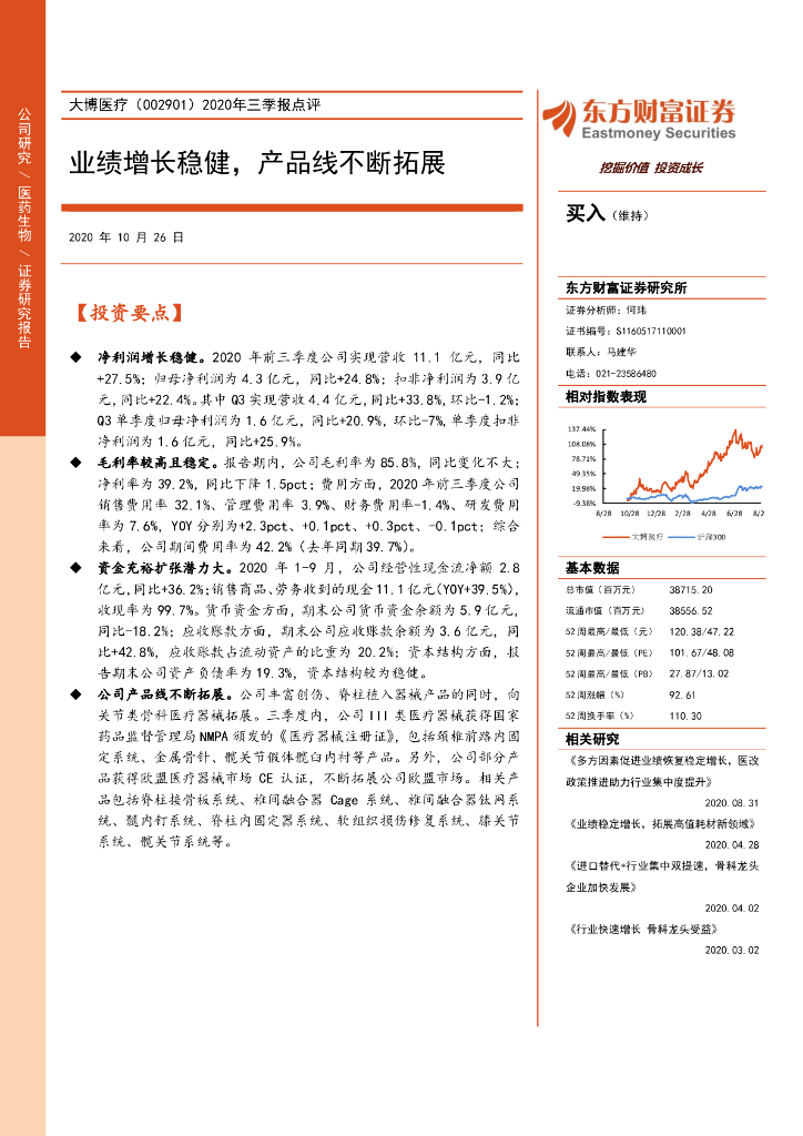 东方财富证券:大博医疗(002901)-2020年三季报点评:业绩增长稳健,产品线不断拓展.pdf