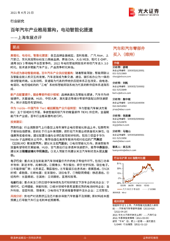 光大证券:汽车和汽车零部件:上海车展点评:百年汽车产业格局重构,电动智能化提速.pdf
