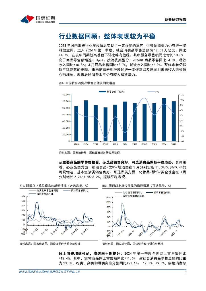 国信证券:商贸零售行业财报总结暨5月投资策略:行业平稳龙头增速领先,降本增效驱动盈利优化.pdf