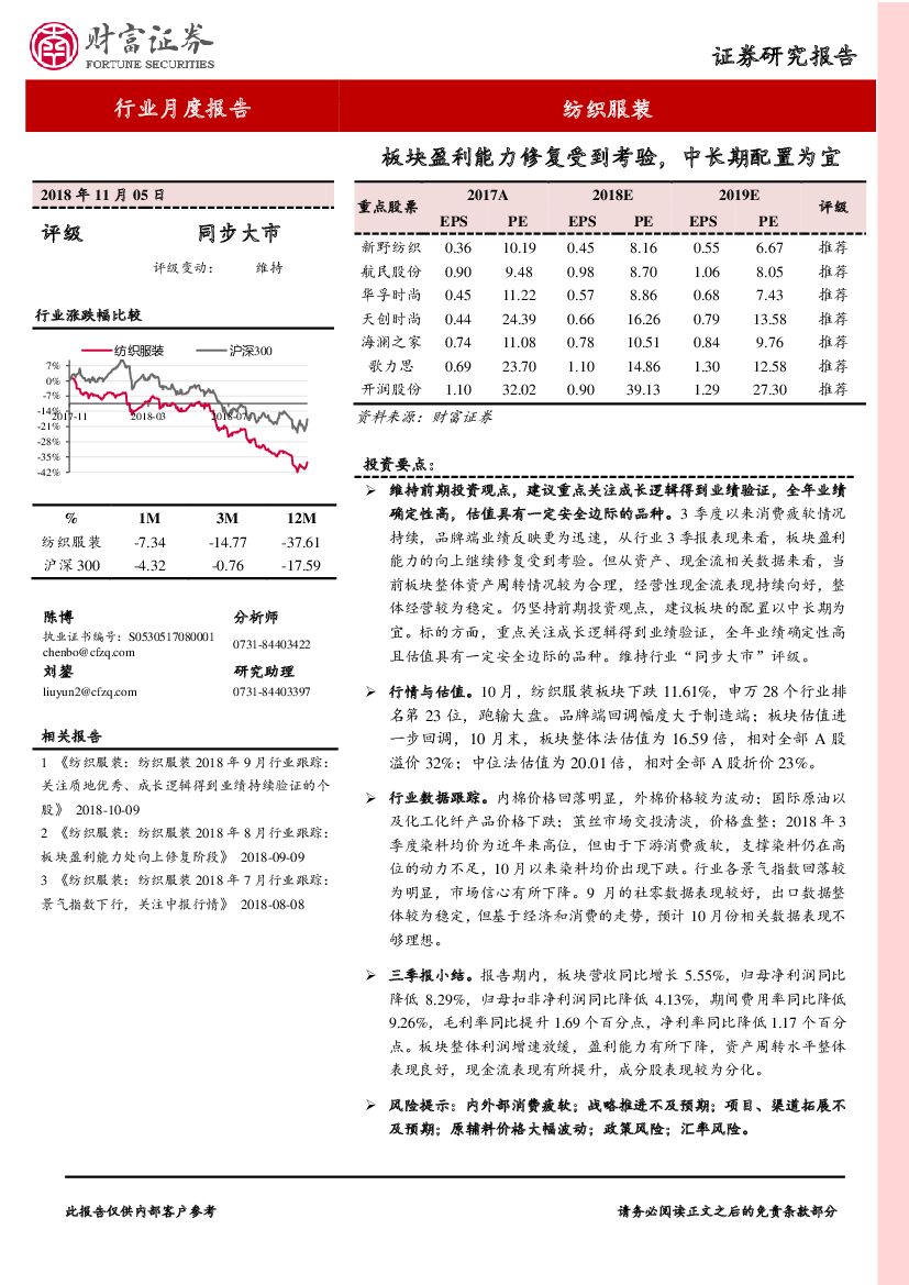 财富证券:纺织服装行业月度报告:板块盈利能力修复受到考验,中长期配置为宜.pdf
