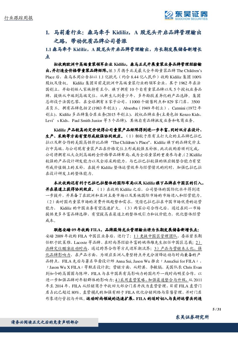 东吴证券:纺织服装:森马牵手Kidiliz,A股龙头开启品牌管理输出之路,带动优质品牌公司普涨.pdf