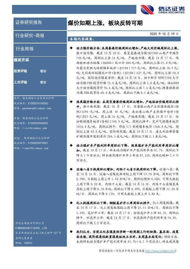 信达证券:煤炭开采行业周报:煤价如期上涨,板块反转可期.pdf