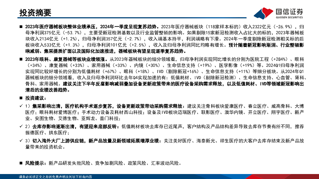 国信证券:医疗器械行业2023年&2024年一季报总结:23年业绩整体承压,24年业绩逐季度加速可期.pdf