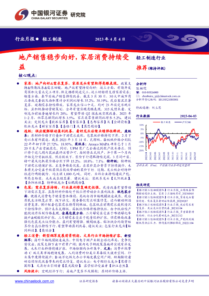 中国银河:轻工制造行业月报:地产销售稳步向好,家居消费持续受益.pdf