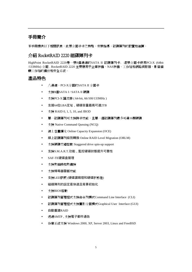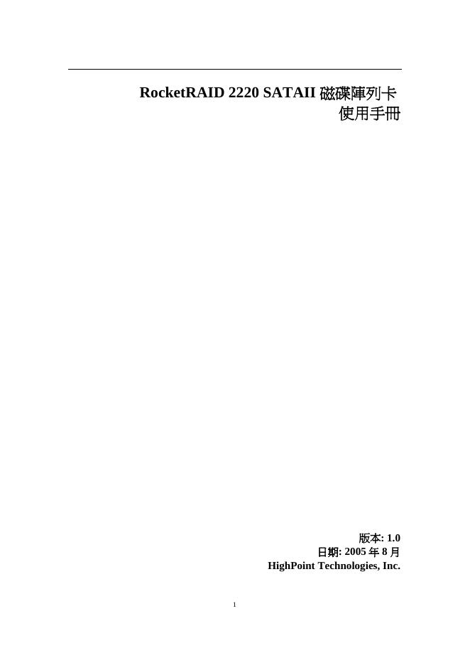 HighPoint Technologies, Inc. RocketRAID 2220 SATAII 磁碟陣列卡 使用手冊.pdf