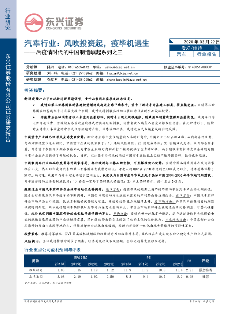 东兴证券:后疫情时代的中国制造崛起系列之三:汽车行业:风吹投资起,疫毕机遇生.pdf