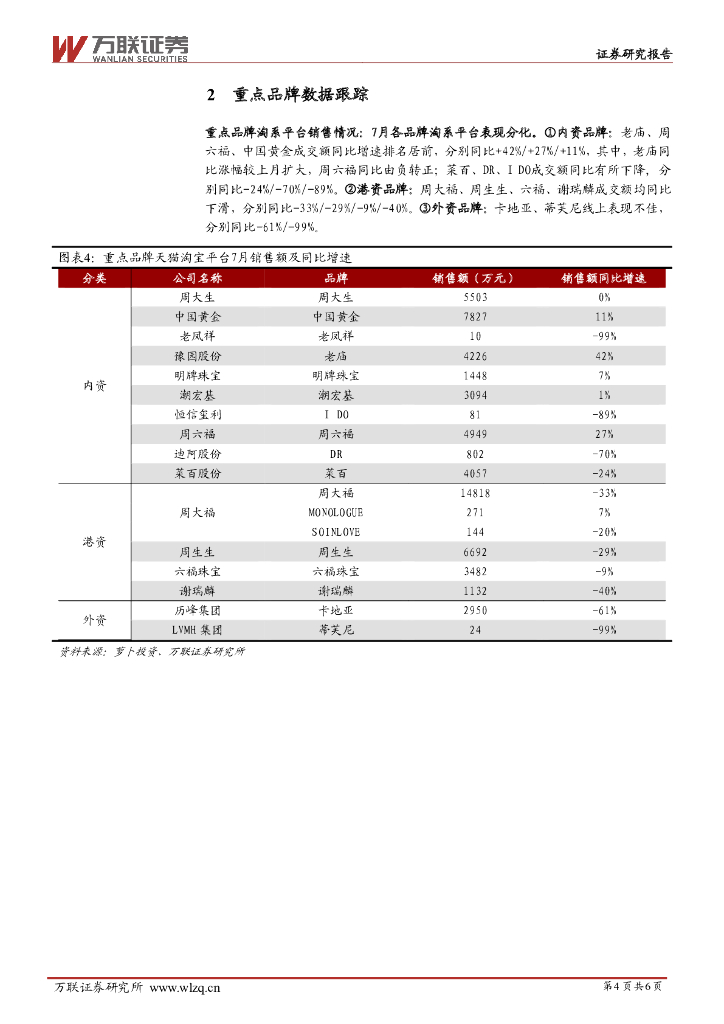 万联证券:商贸零售行业7月珠宝电商数据跟踪报告:7月黄金珠宝线上表现有所降温,淘系、京东同比涨幅收窄.pdf