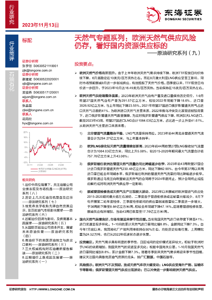 东海证券:原油研究系列(九):天然气专题系列:欧洲天然气供应风险仍存,看好国内资源供应标的.pdf