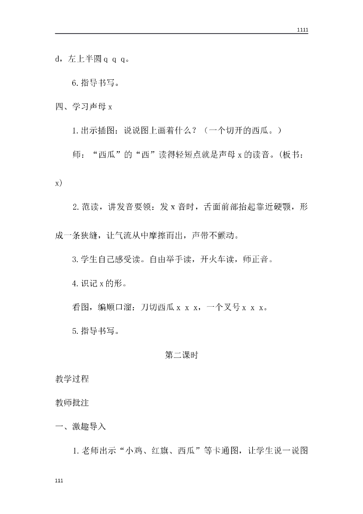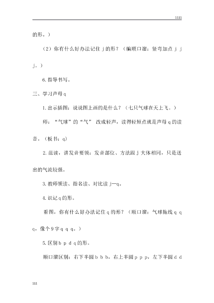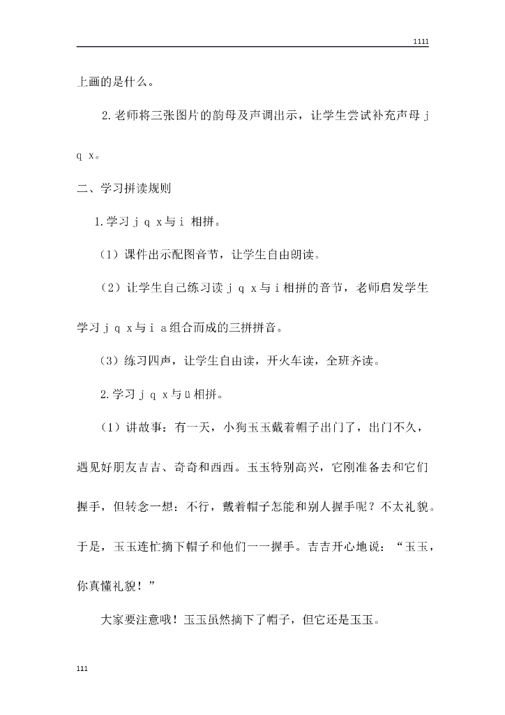 一年级语文(教案1)6 j q x教学设计.doc