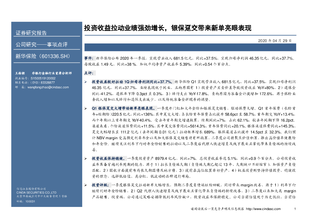 信达证券:新华保险(601336)-投资收益拉动业绩强劲增长,银保趸交带来新单亮眼表现.pdf