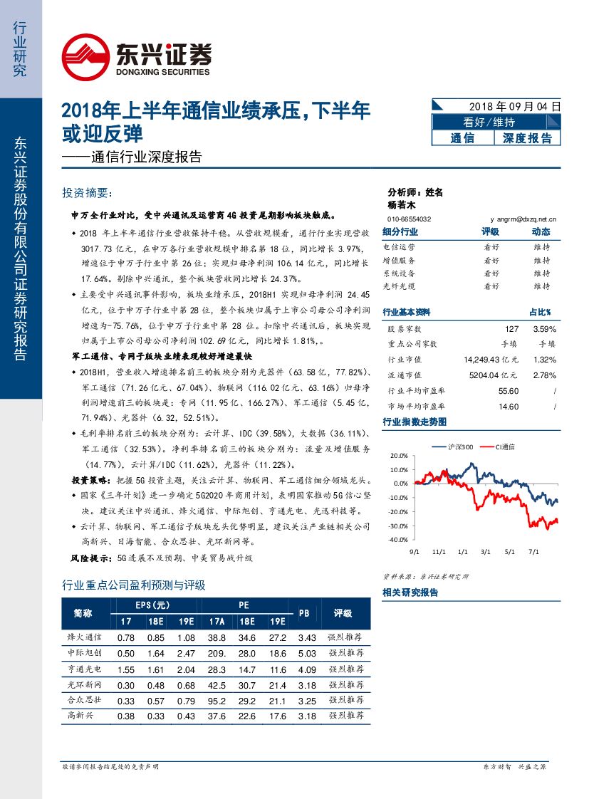 东兴证券:通信行业深度报告:2018年上半年通信业绩承压,下半年或迎反弹.pdf
