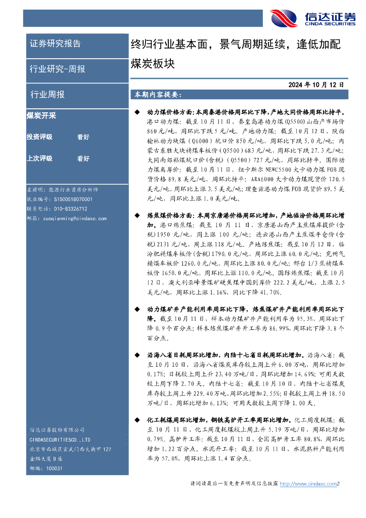 信达证券:终归行业基本面,景气周期延续,逢低加配煤炭板块.pdf