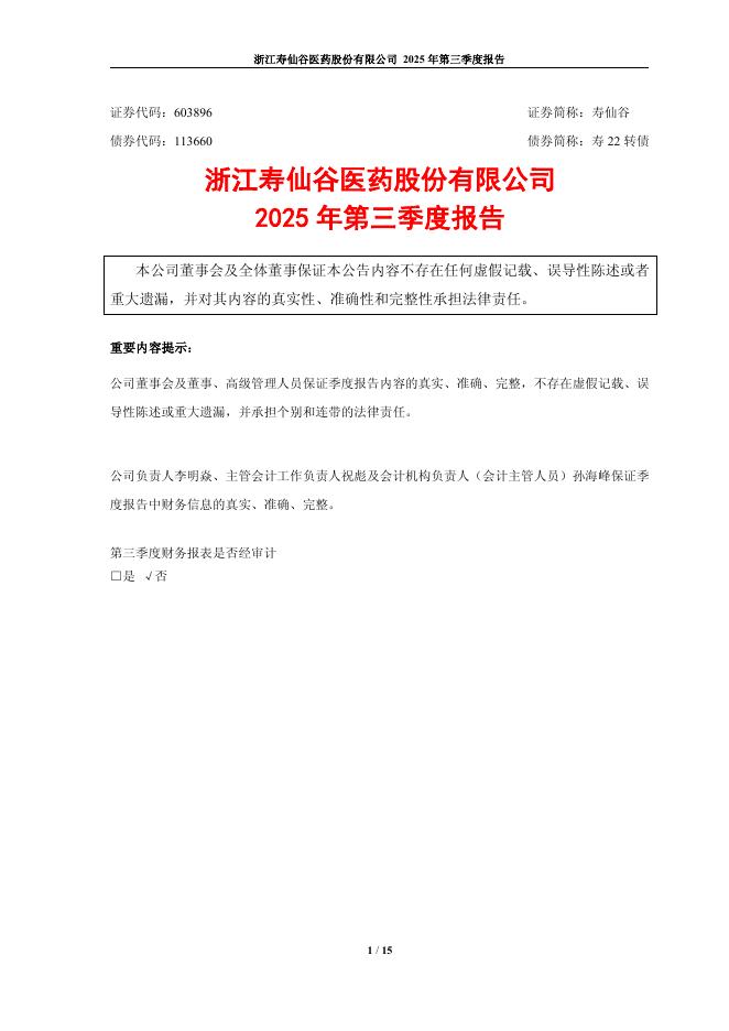 113660-寿仙谷:寿仙谷2025年第三季度报告.pdf