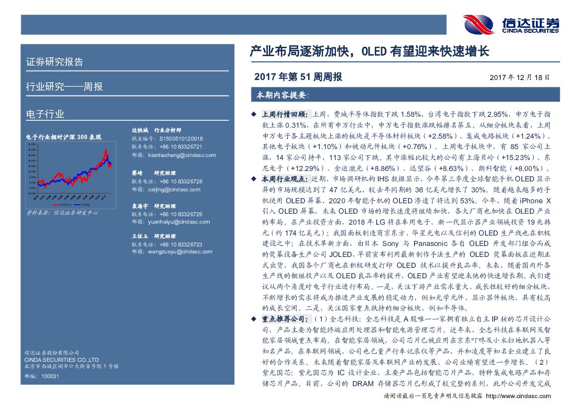 信达证券:电子行业周报:产业布局逐渐加快,OLED有望迎来快速增长.pdf