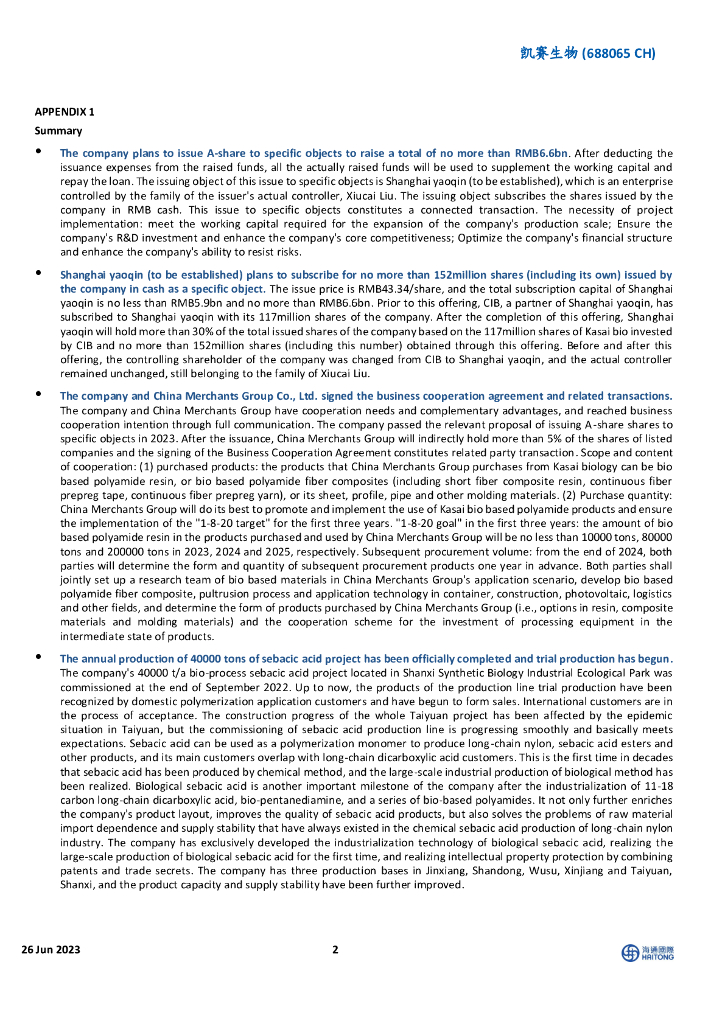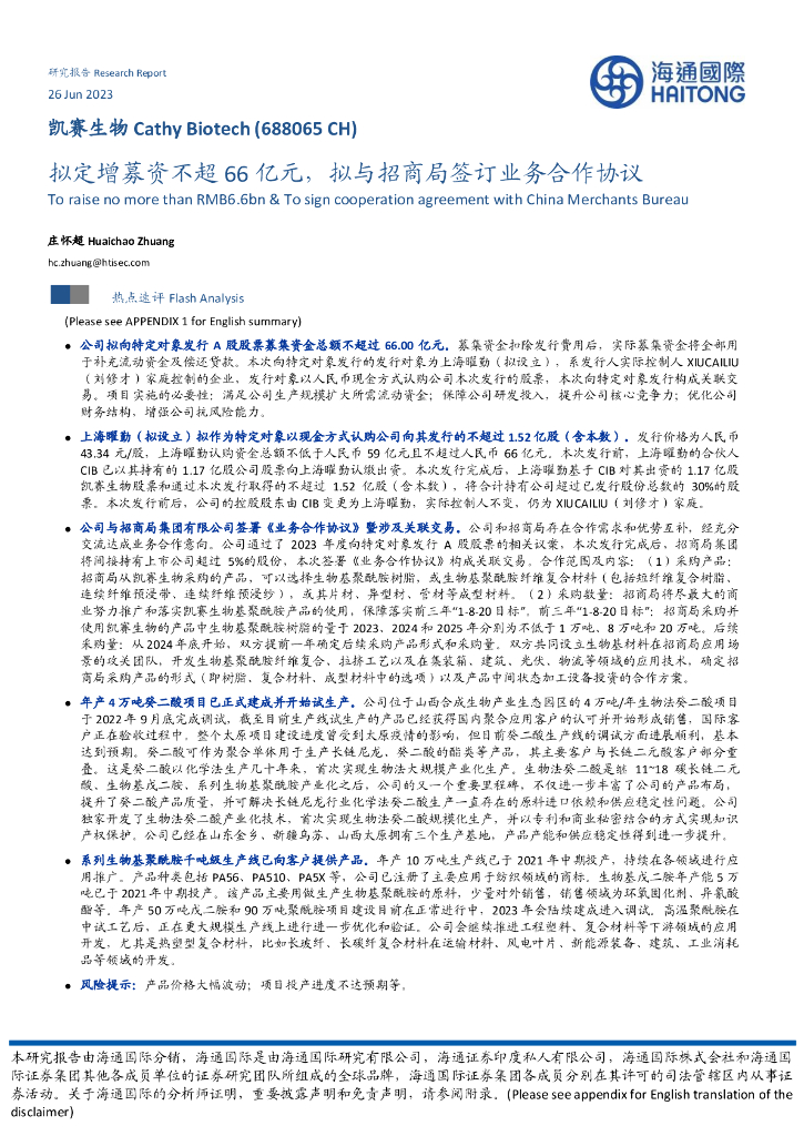 海通国际:凯赛生物(688065)-拟定增募资不超66亿元,拟与招商局签订业务合作协议.pdf