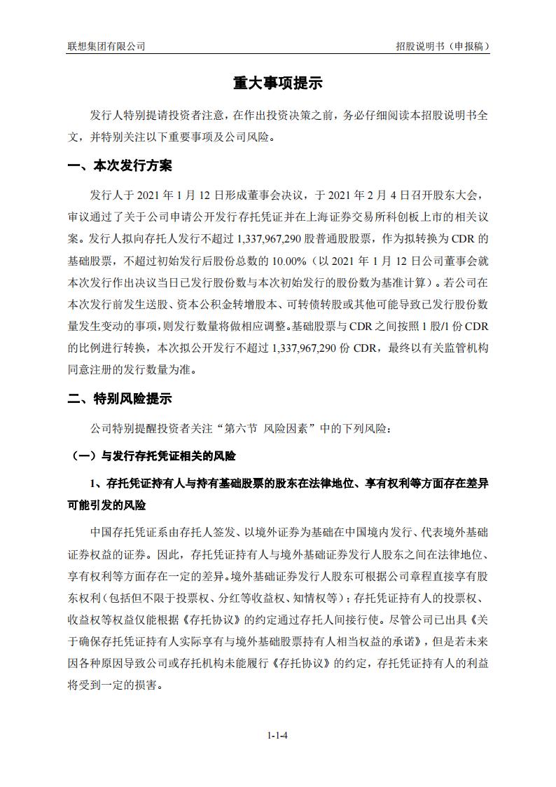 联想集团科创板IPO公开发行存托凭证招股说明书.pdf