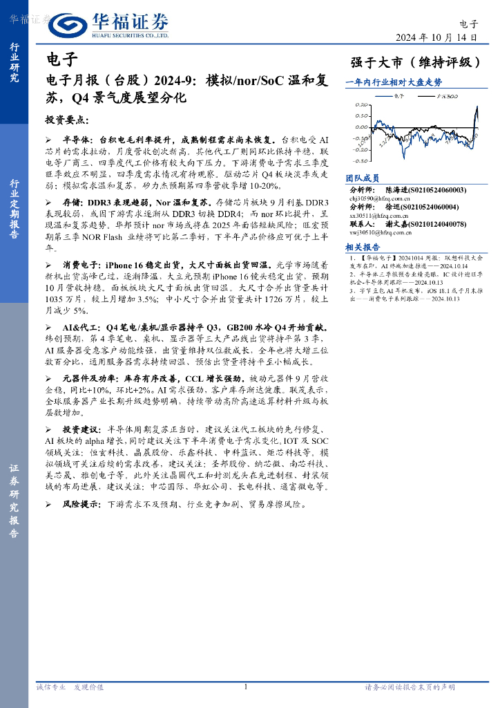 华福证券:电子月报(台股)2024-9:模拟/nor/SoC温和复苏,Q4景气度展望分化.pdf
