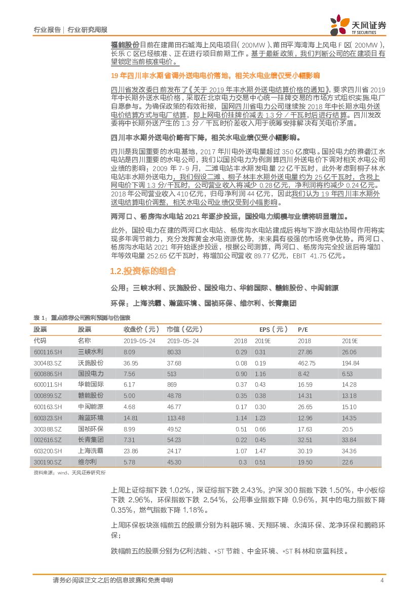 天风证券:公用事业行业研究周报:风电电价政策落地,推荐中闽能源;19年四川丰水期省调外送电电价落地,看好国投电力.pdf