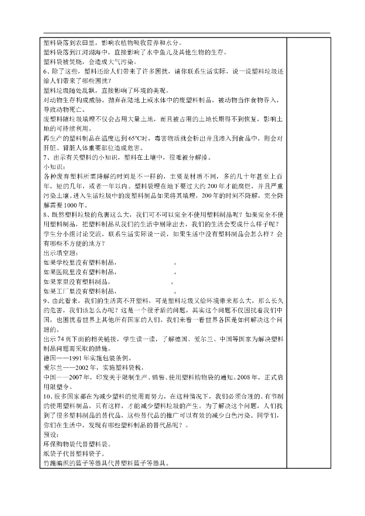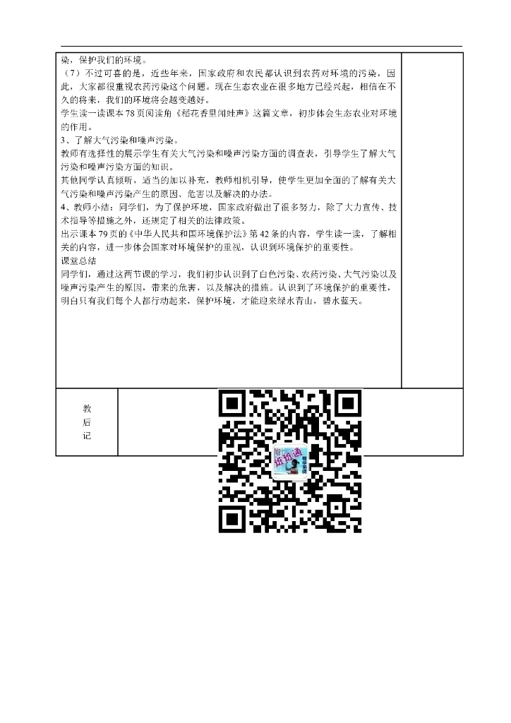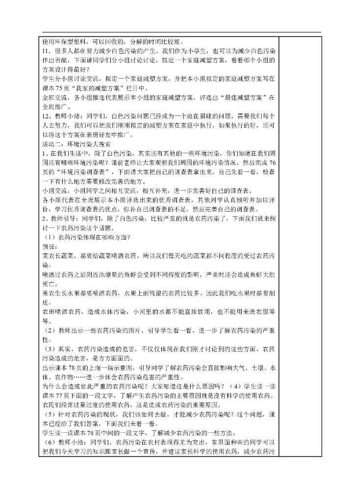 2021四年级上册 人教版小学道德与法治4.1 我们所了解的环境污染 (表格式).doc