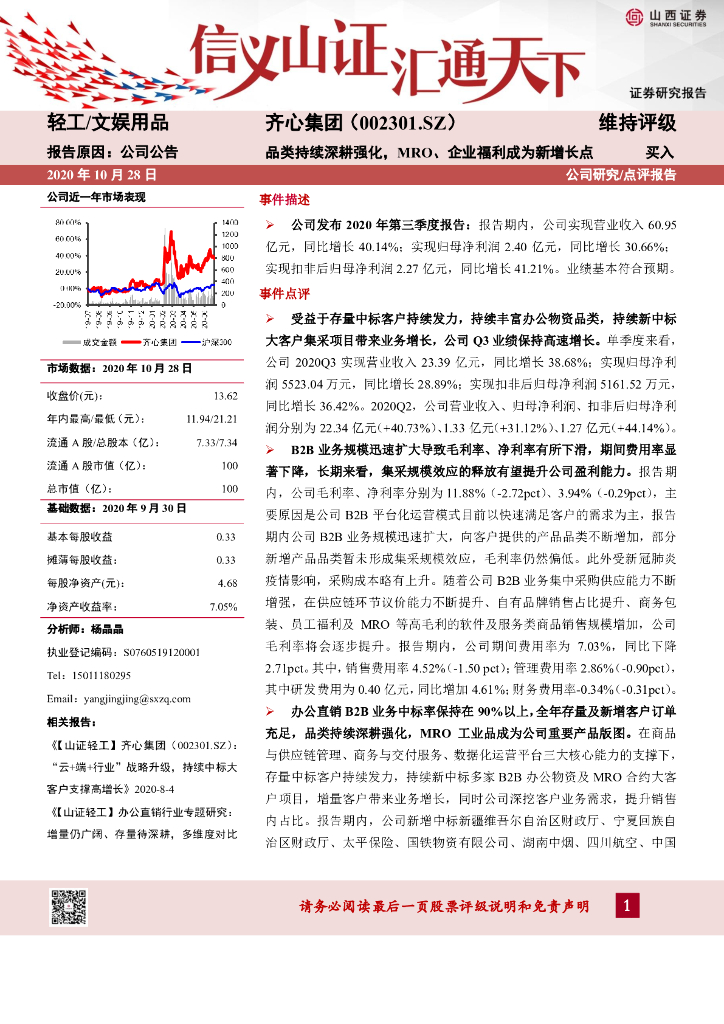 山西证券:齐心集团(002301)-品类持续深耕强化,MRO、企业福利成为新增长点.pdf