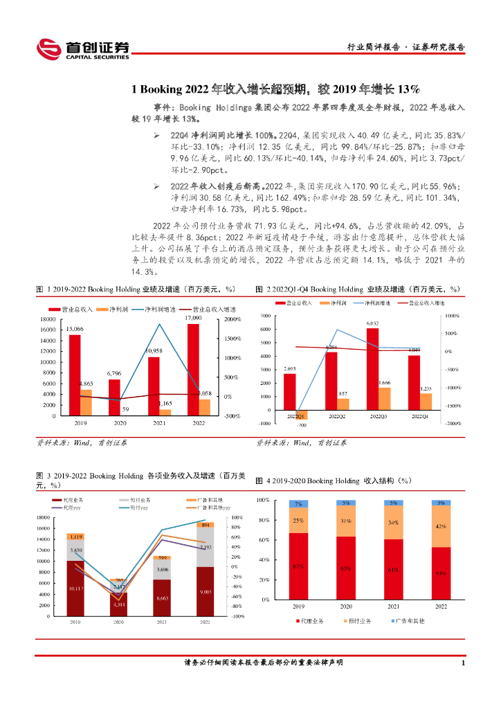 首创证券:社会服务行业简评报告:Booking2022年收入增长超预期,旅业复苏势头强劲.pdf