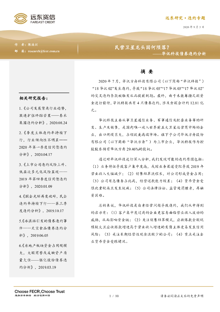 远东资信:民营卫星龙头因何陨落?——华讯科技债券违约分析报告.pdf