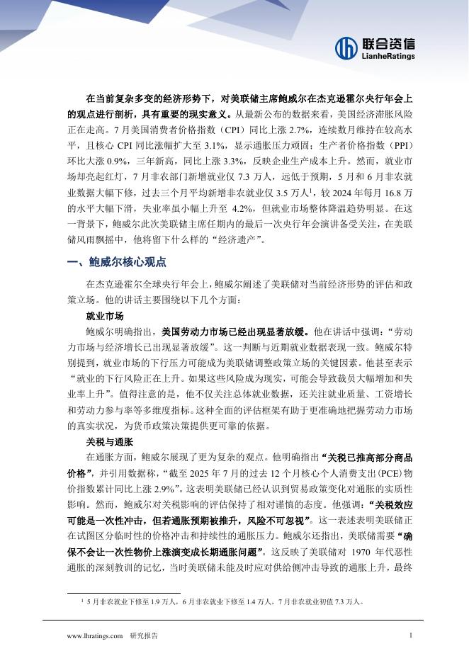 联合资信;2025年鲍威尔于杰克逊霍尔“最后演讲”:为何市场读懂了降息,却忽视了滞胀风险?.pdf