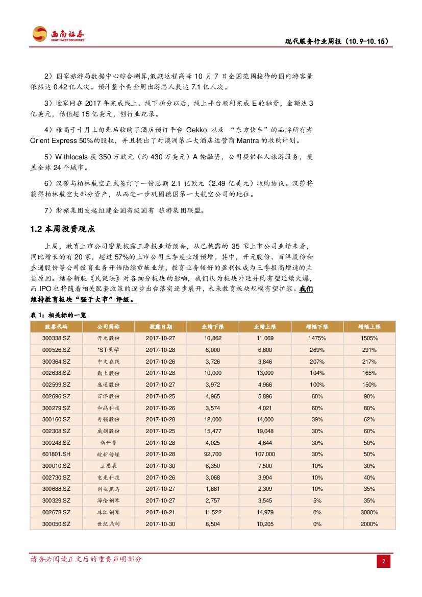 西南证券:现代服务行业周报:三季报临近,教育业务提升公司盈利能力.pdf