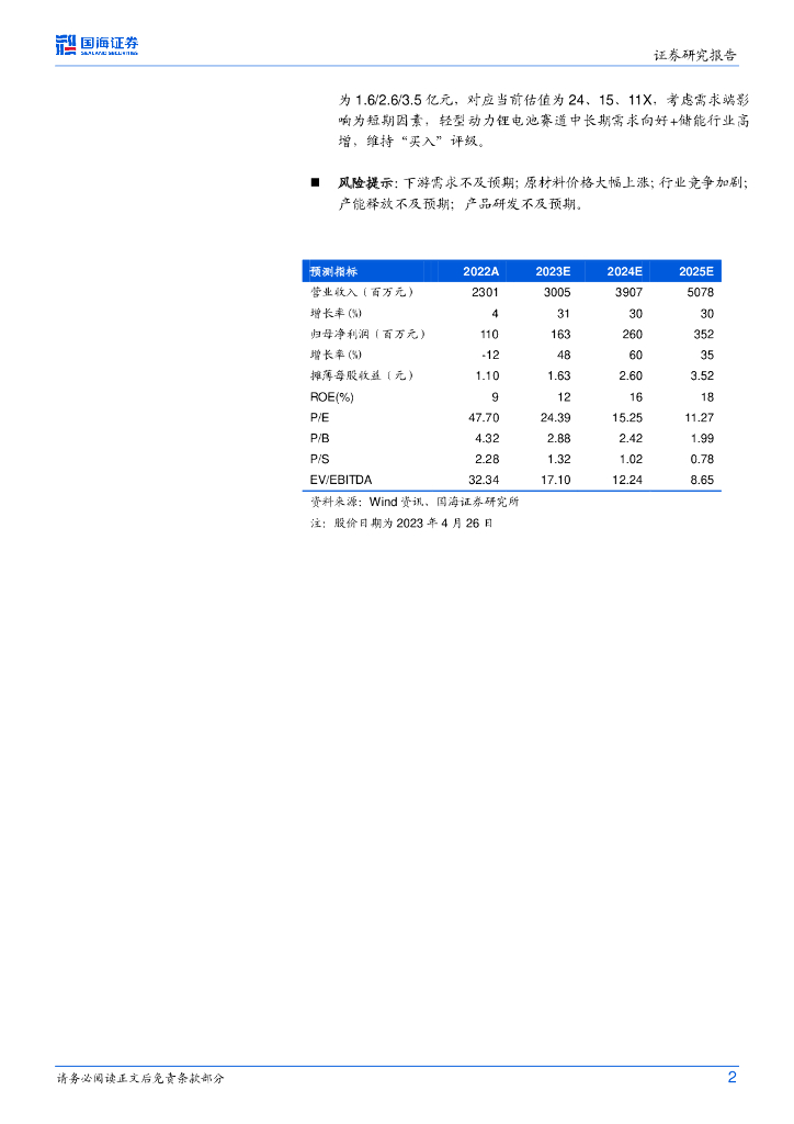 国海证券:博力威(688345)-2022年年报及2023年一季报点评:储能业务高增,静待轻型动力需求恢复.pdf