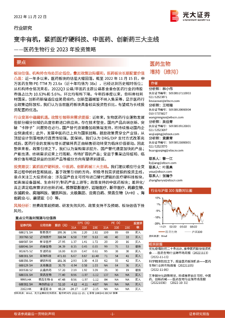 光大证券:医药生物行业2023年投资策略:变中有机,紧抓医疗硬科技、中医药、创新药三大主线.pdf