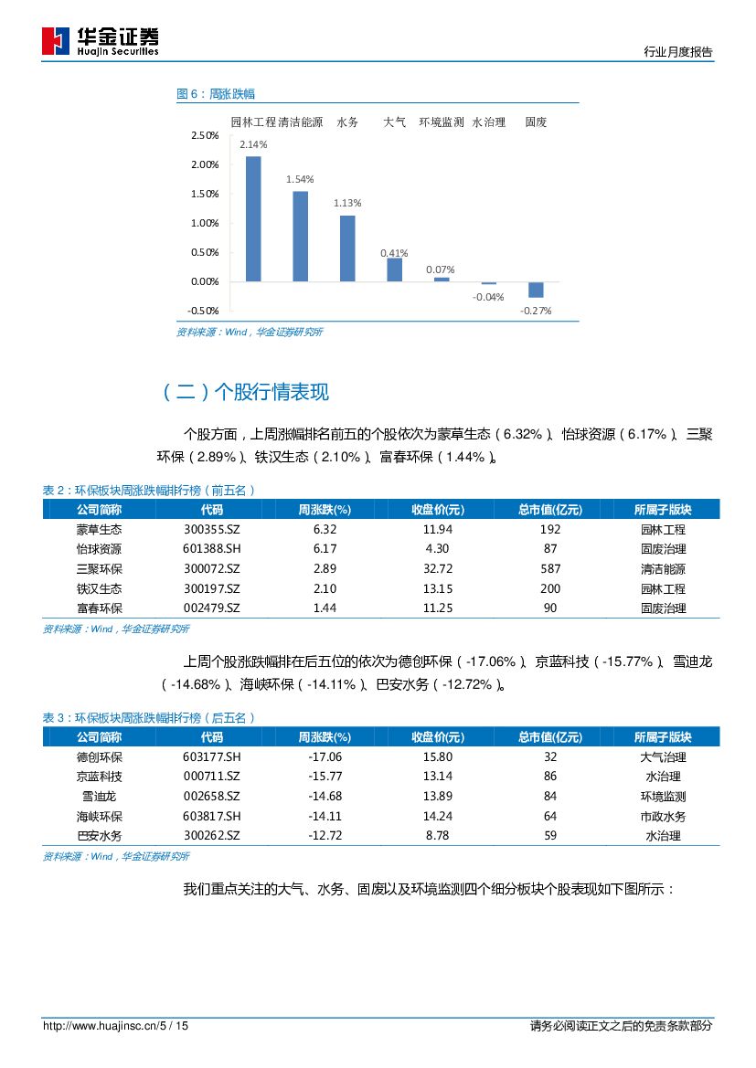 华金证券:环保及公用事业行业周度报告:生态文明保持战略高度,环保体制改革不断全面深入.pdf