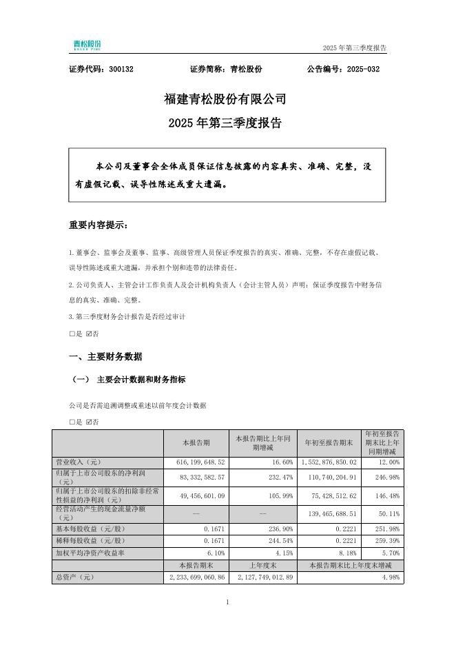300132-青松股份:2025年三季度报告.pdf