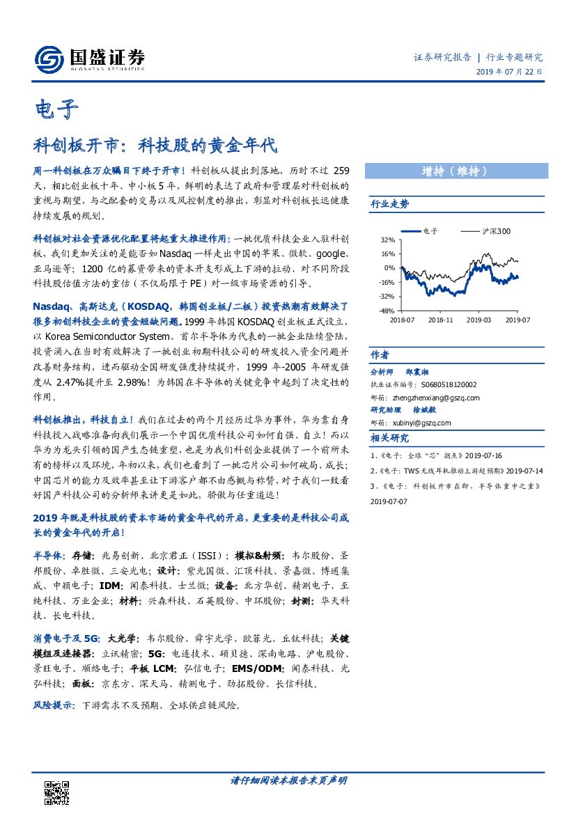 国盛证券:电子:科创板开市:科技股的黄金年代.pdf