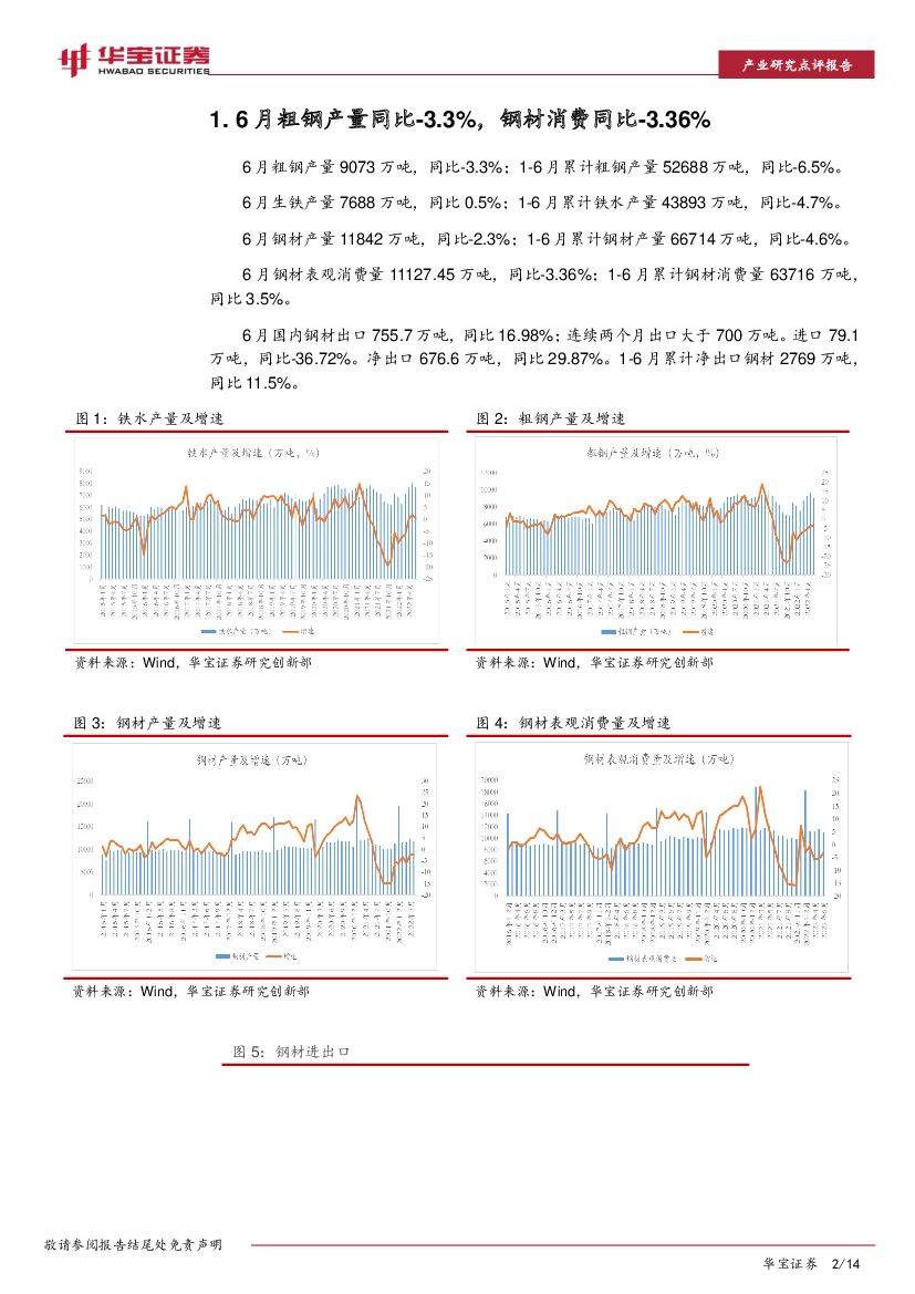 华宝证券:钢铁行业月度报告:6月粗钢产量同比-3.3%,钢企主动减产力度加大.pdf