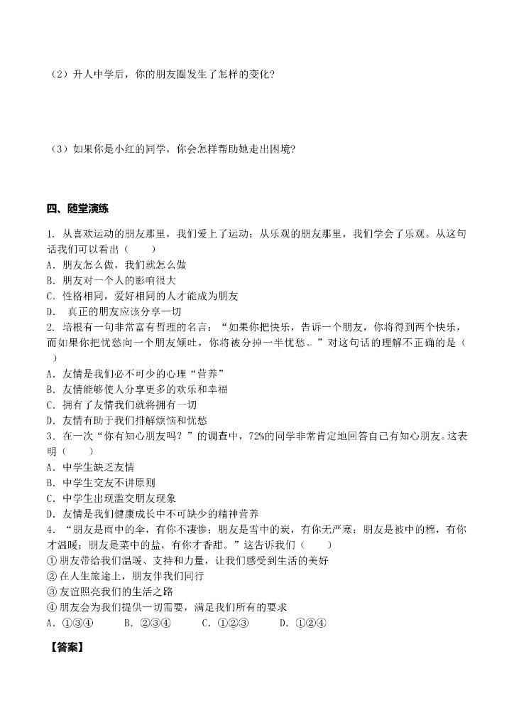 七年级上册 初中道德与法治第1课时 和朋友在一起(1).doc
