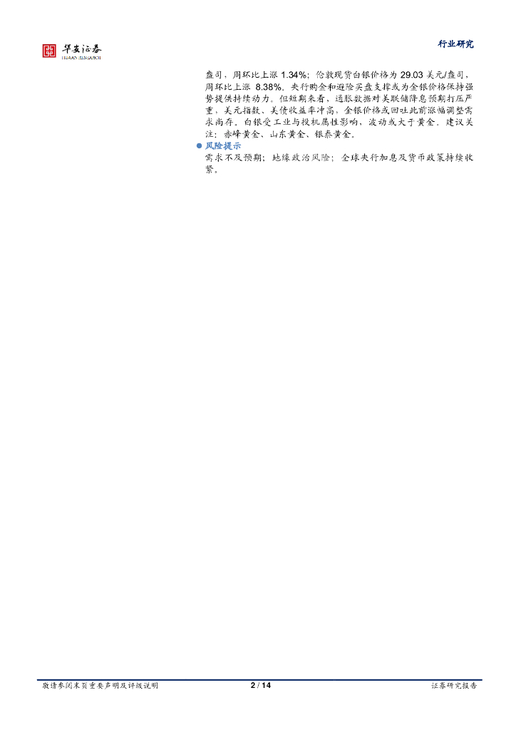 华安证券:有色金属行业周报:金价高位震荡,稀土价格回暖.pdf