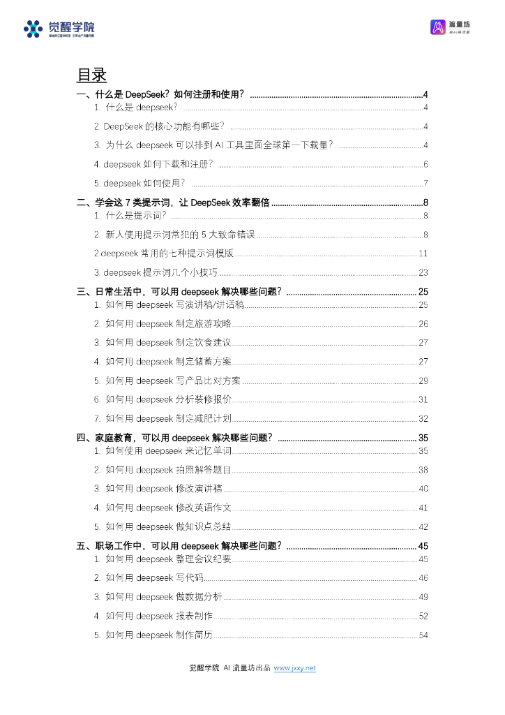 觉醒学院&AI流量坊:2025年DeepSeek 7大场景+50大案例+全套提示词 从入门到精通干货.pdf