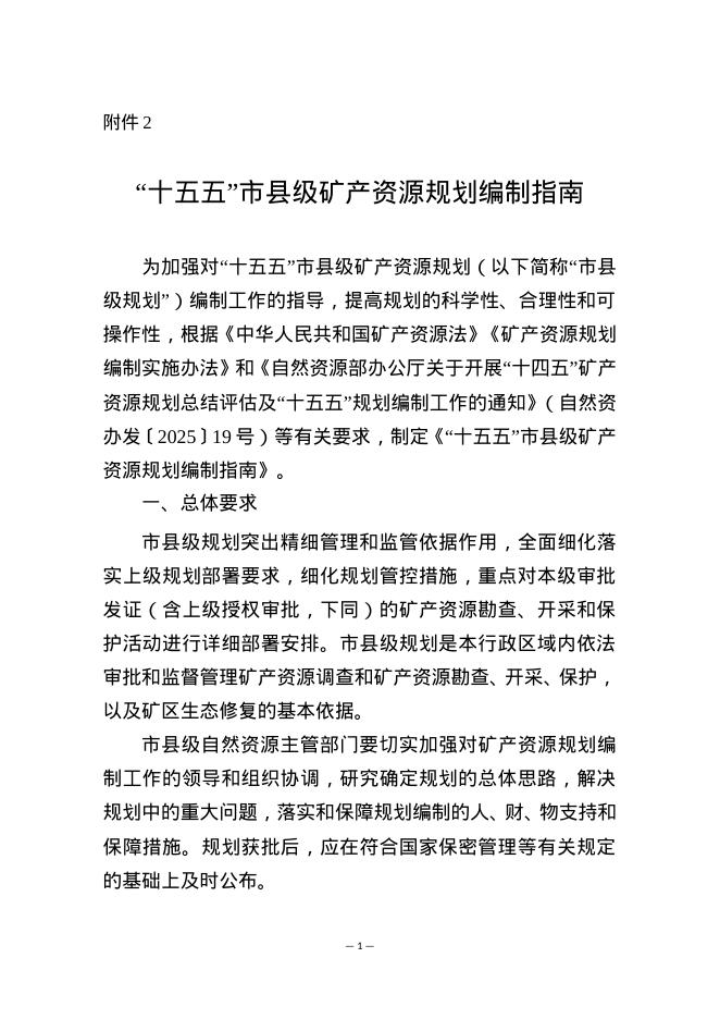 自然资源部:“十五五”市县级矿产资源规划编制指南.doc