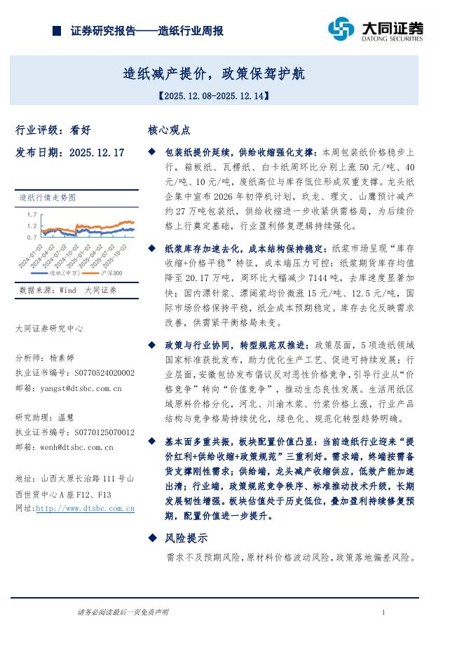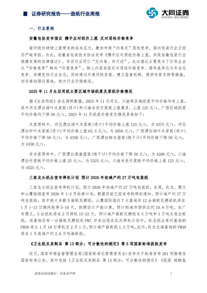 大同证券:造纸行业周报:造纸减产提价,政策保驾护航.pdf