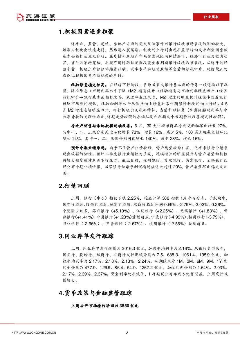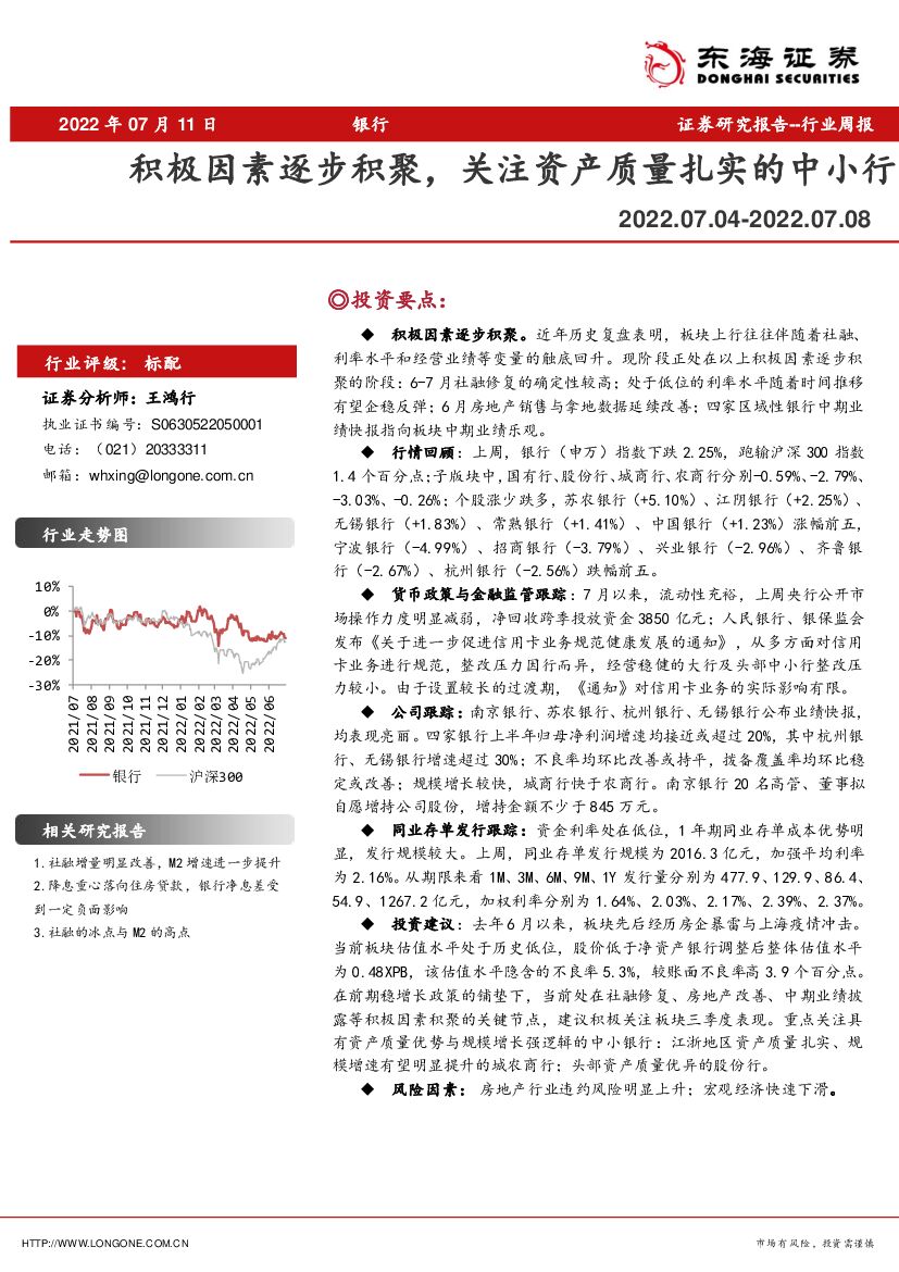东海证券:银行行业周报:积极因素逐步积聚,关注资产质量扎实的中小行.pdf