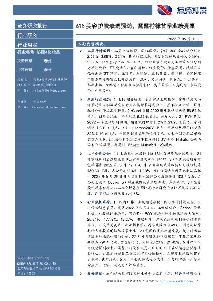 信达证券:纺织服装&化妆品行业周报:618美容护肤表现强劲,露露柠檬首季业绩亮眼.pdf