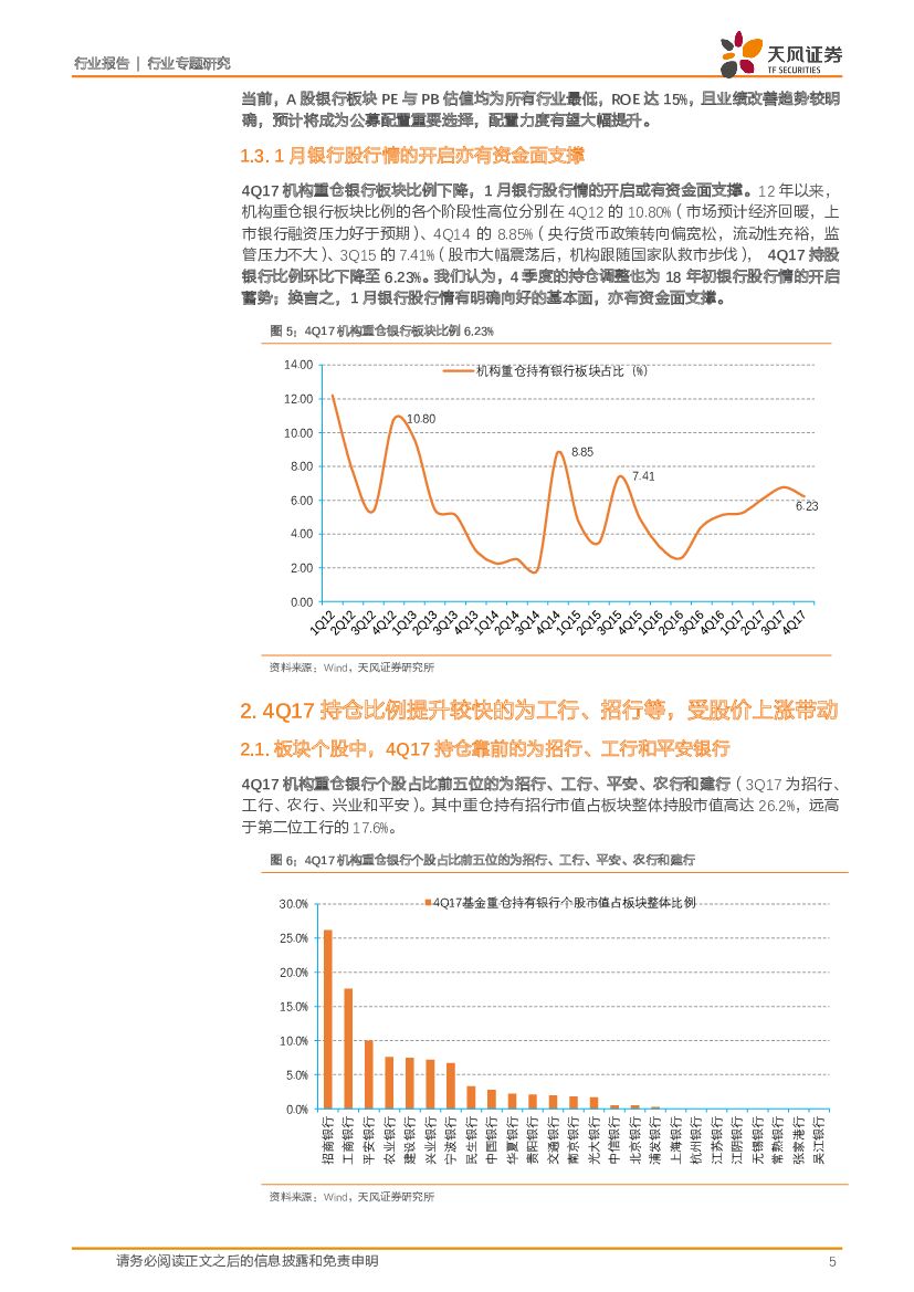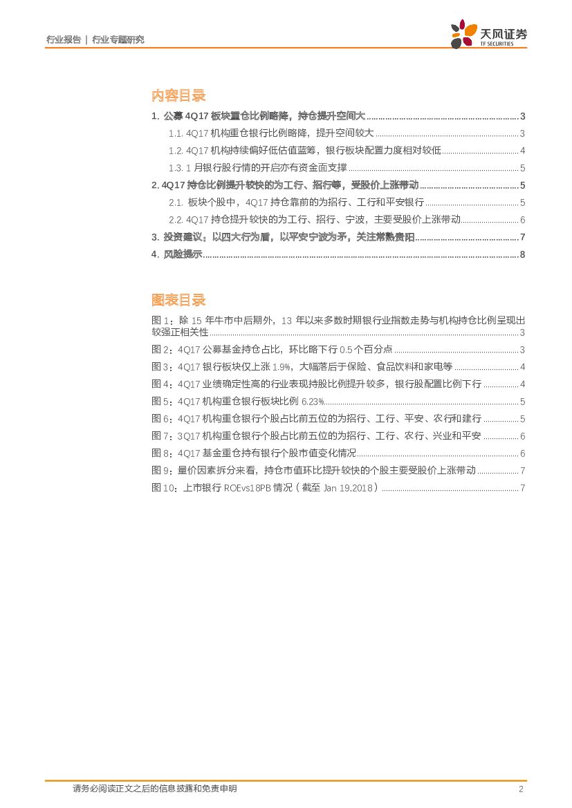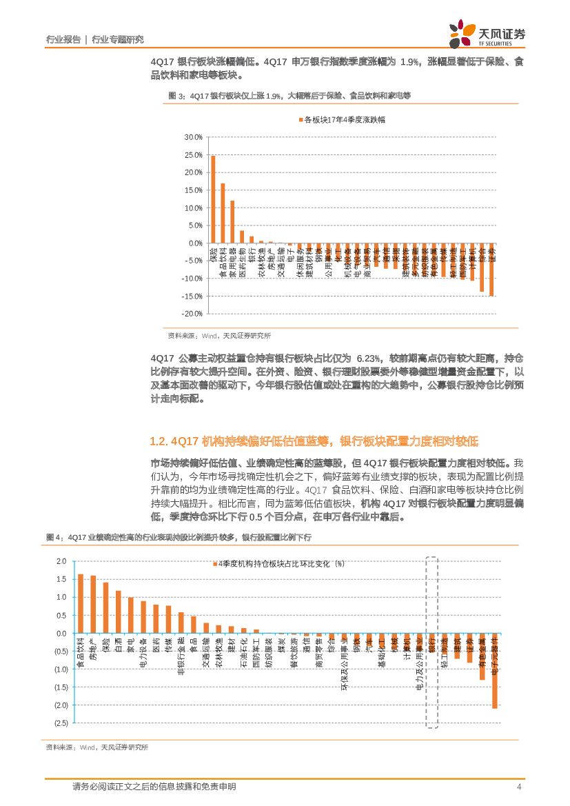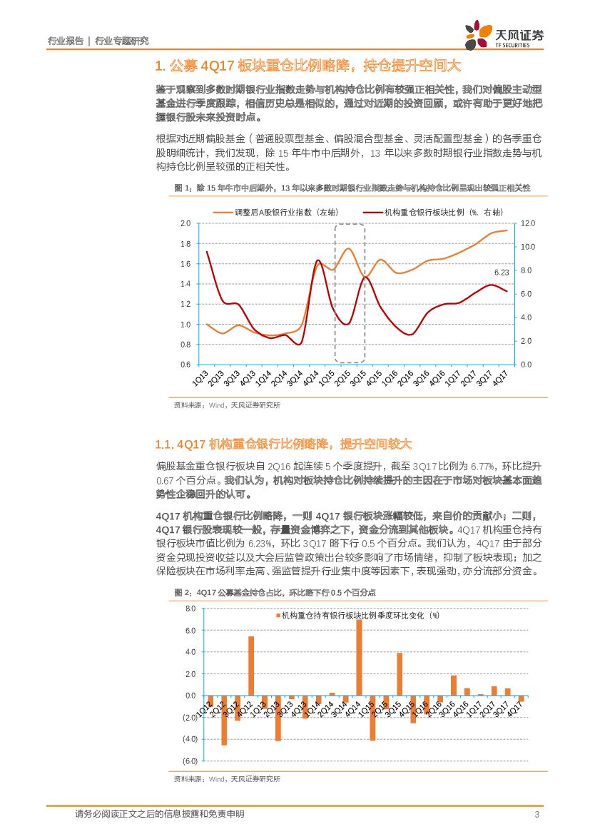 天风证券:银行行业专题研究:从基金持仓看银行股:4Q17持仓仍低,料走向标配.pdf
