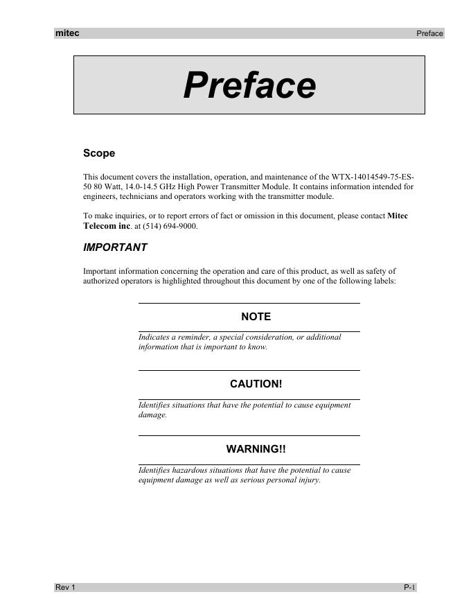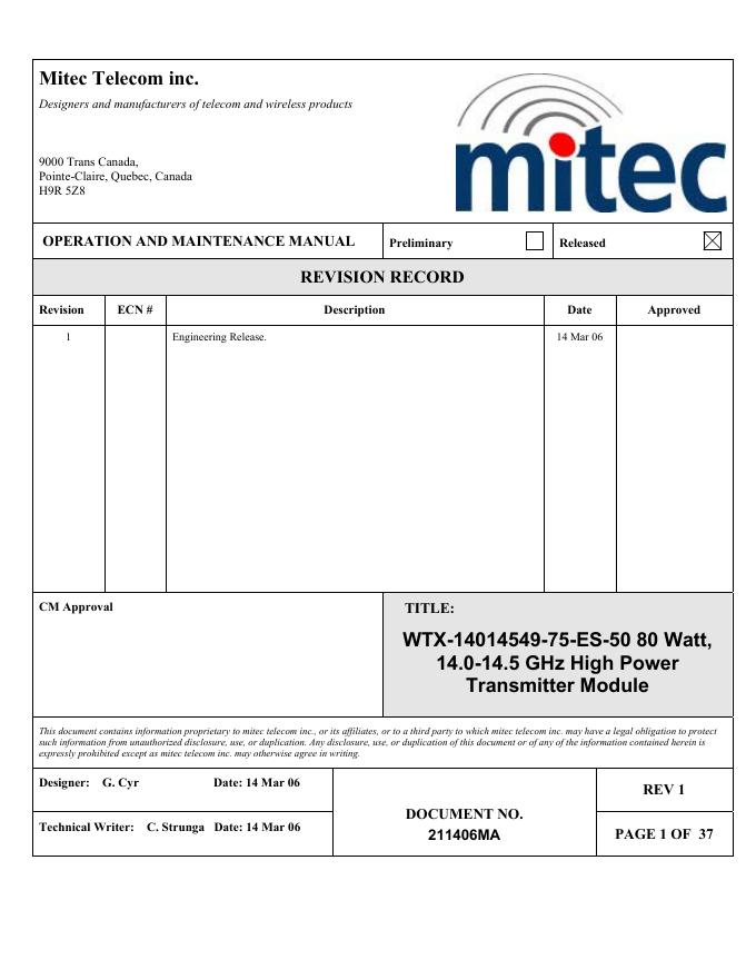WTX-14014549-75-ES-50 80 Watt, 14.0-14.5 GHz High Power Transmitter Module 使用手册.pdf