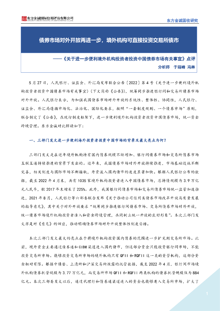东方金诚:债券市场对外开放再进一步,境外机构可直接投资交易所债市.pdf