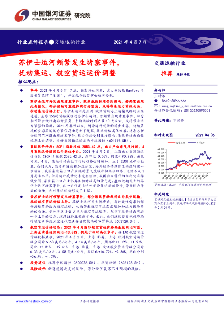 中国银河:交通运输行业点评报告:苏伊士运河频繁发生堵塞事件,扰动集运、航空货运运价调整.pdf