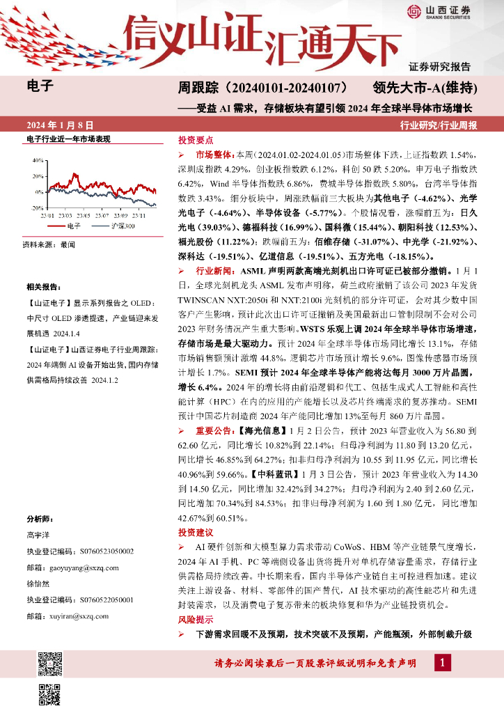 山西证券:电子周跟踪:受益AI需求,存储板块有望引领2024年全球半导体市场增长.pdf
